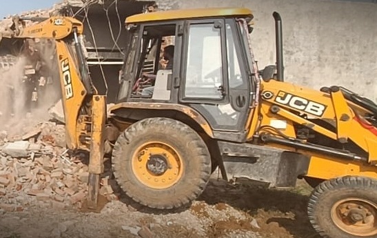 After this the team reached village Sarai Alaverdi. Here 10 shops were being constructed alongside a drain. The team razed all the constructions with the help of JCB machines.