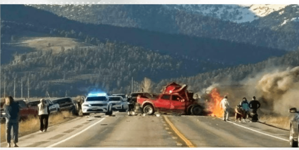 The crash occurred just before sunset on Thursday near Henry’s Lake, when a Dodge Ram pickup struck a passenger van carrying a 14-member tour group. Both vehicles caught fire following the collision.