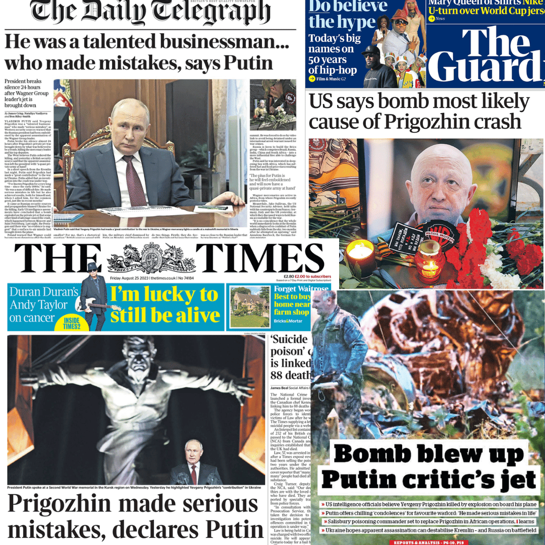 Recall June: Prigozhin was a hot dog vendor-turned Kremlin caterer-turned ruthless Putin ally. Following years of their close relationship, Prighozhin led a 36-hour rebellion on June 23 attempting to topple Russia’s military leadership. His Wagner mercenary group (named after Hitler’s favourite composer) took over a military command HQ, several towns, slaughtered over a dozen Russian soldiers and steam rolled their tanks to within 125 miles of Moscow.