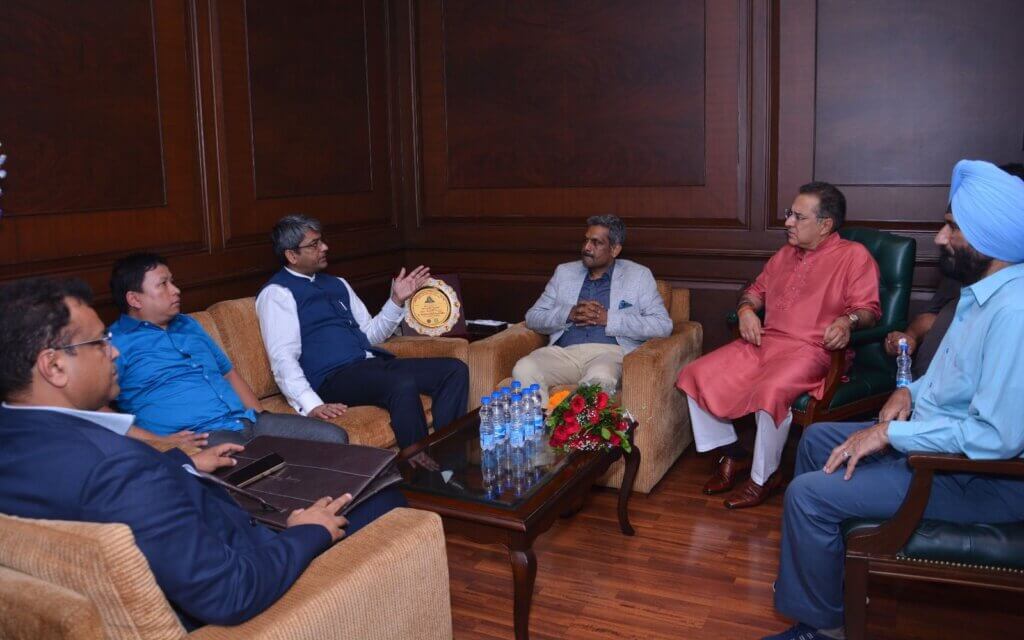 AIFF President Kalyan Chaubey, Secretary General Dr. Shaji Prabhakaran, Treasurer Kipa Ajay, Deputy Secretary General Satyanarayan M and AIFF Grassroots Committee Chairperson Mulrajsinh Chudasama met Harjot Singh Bains, Minister for School Education, Government of Punjab, and PFA President Samir Thapar.