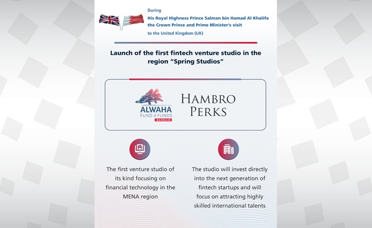 Manama : On the sidelines of the visit of His Royal Highness Prince Salman bin Hamad Al Khalifa, the Crown Prince and Prime Minister, to the United Kingdom (UK), the Al Waha Fund of Funds announced the launch of the first fintech venture studio “Spring Studios” in collaboration with the UK-based global venture capital firm “Hambro Perks”.