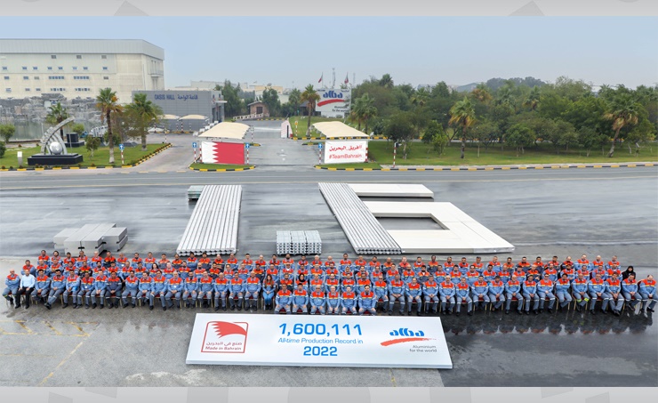 Manama): Aluminum Bahrain (Alba) has set a new historic production record of 1,600,111 metric tonnes (MT) in 2022, an increase of 38,889 MT over the 1,561,222 MT in 2021 (+2.5% Year-on-Year).