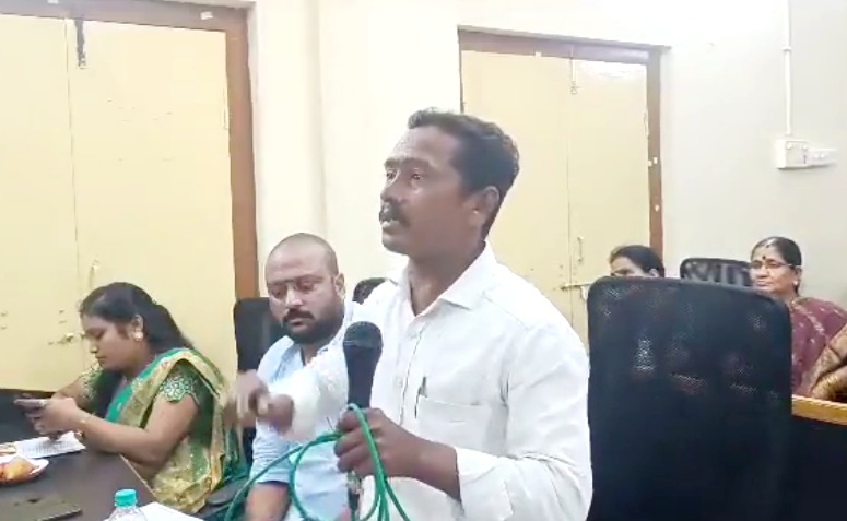 Blaming his own fate for this situation, Ramaraju took out a slipper and hit himself on his cheeks. Other councilors advised him to stop hitting himself with the footwear. He threw the mike on the table to end his speech.