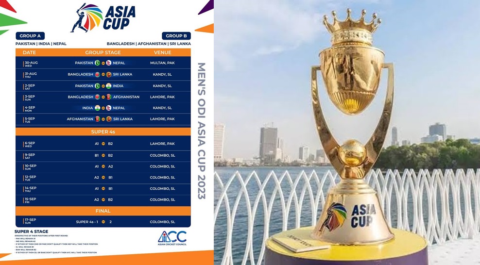 The 2023 edition of Asia Cup, which is also the 16th edition of the tournament, will feature two groups, with two teams from each group qualifying for the Super Four stage. The top two teams from the Super Four stage will then face off in the final.
