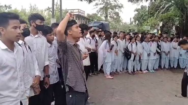 The college students’ union and RSS-affiliated student organisation ABVP staged a protest after the college principal Dipak Kr. Neog and four