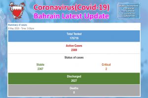 Bahrain tested a total of 170,719 until now. There are 2,369 active cases. These include 2,367 stable cases and 2 critical cases. 2,027 people have been discharged. Only 8 deaths have been reported until now. This takes the total cases in Bahrain to 4,404.