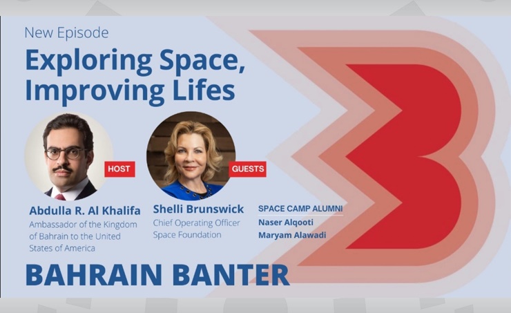 The envoy was speaking during the last episode of the “Bahrain Banter” podcast programme, which focused on space technology and science. The Ambassador hosted Shelley Brunswick, Chief Operating Officer (COO) of the Space Foundation, and two Bahraini students, Nasser Al Quti and Maryam Al Awadhi, who are graduates of US Space camp.