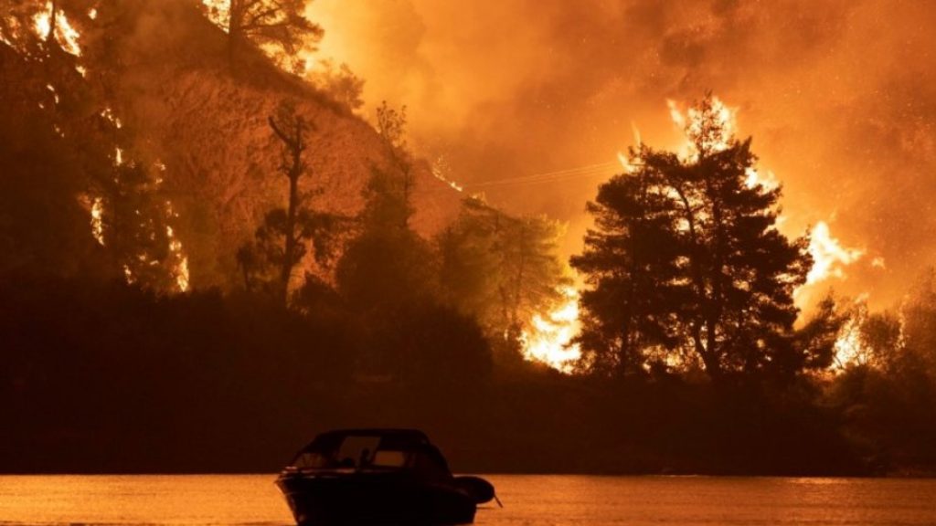 ATHENS : Flames swept through a residential town outside Athens overnight as wildfires burned across Greece for a fifth day on Saturday, and hundreds of people were evacuated by ferry from the island of Evia east of the capital.