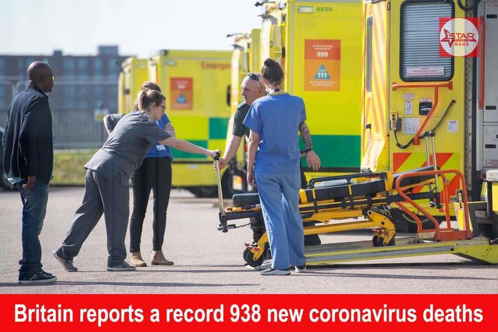 Britain on Wednesday reported a record 938 new COVID-19 deaths in its daily update, 152 more than its previous highest toll, as the total number of deaths passed 7,000.