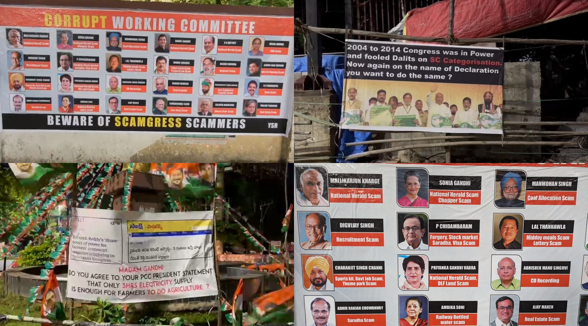 A poster describing the CWC as ‘Corrupt Working Committee’, carries pictures of 24 Congress leaders with scams they were allegedly involved in.
