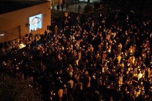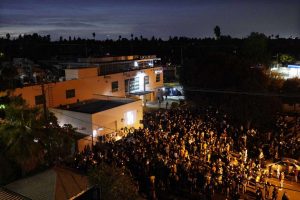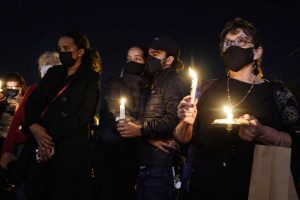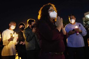 A vigil for Hutchins was held Sunday in Southern California, where attendees exchanged tearful hugs and speakers echoed calls for heightened safety standards.
