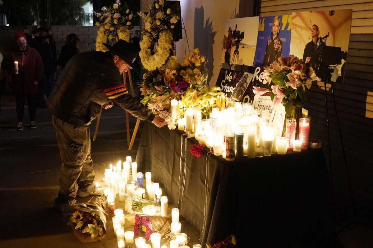 A vigil for Hutchins was held Sunday in Southern California, where attendees exchanged tearful hugs and speakers echoed calls for heightened safety standards.