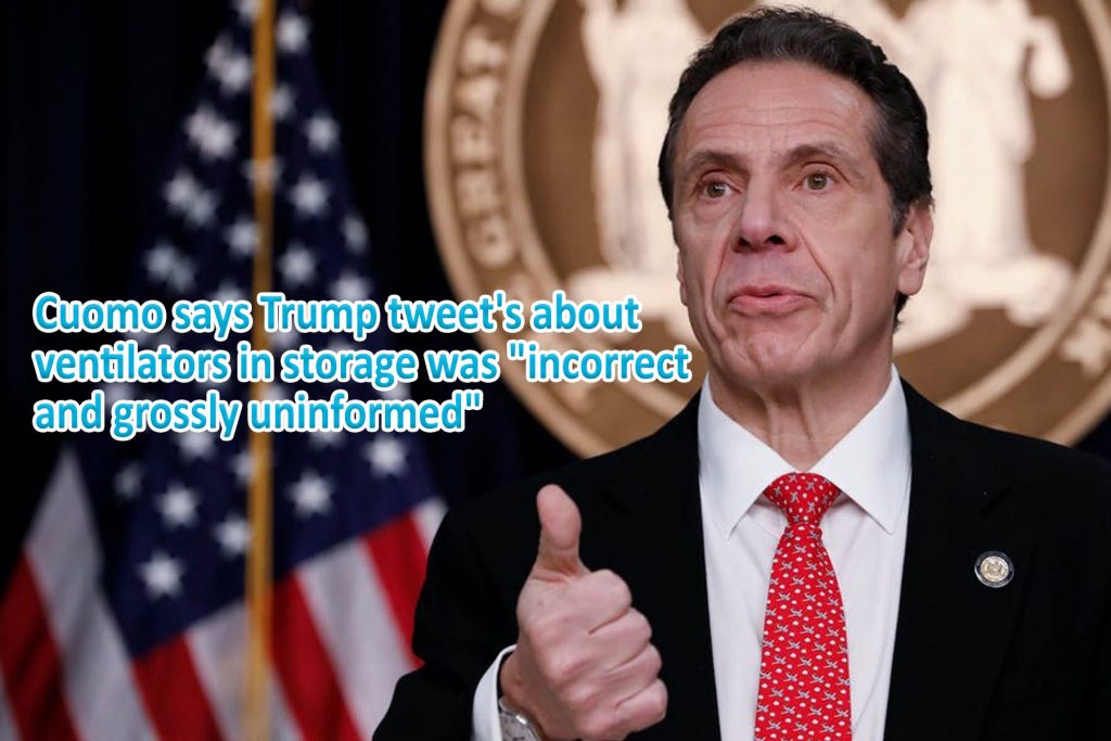 New York Gov. Andrew Cuomo responded to President Trump’s tweet that there are thousands of federal government ventilators found in a storage facility in New York and that the state “must distribute now.”