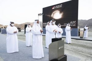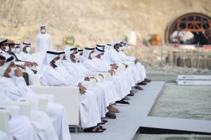 Sheikh Hamad bin Mohammed Al Sharqi, the Ruler of Fujairah, Sheikh Mohammed bin Hamad Al Sharqi, Crown Prince of Fujairah, and Sheikh Theyab bin Mohamed bin Zayed, chairman of Etihad Rail, visited the Sakamkam area in the emirate to mark the completion of the excavation works.