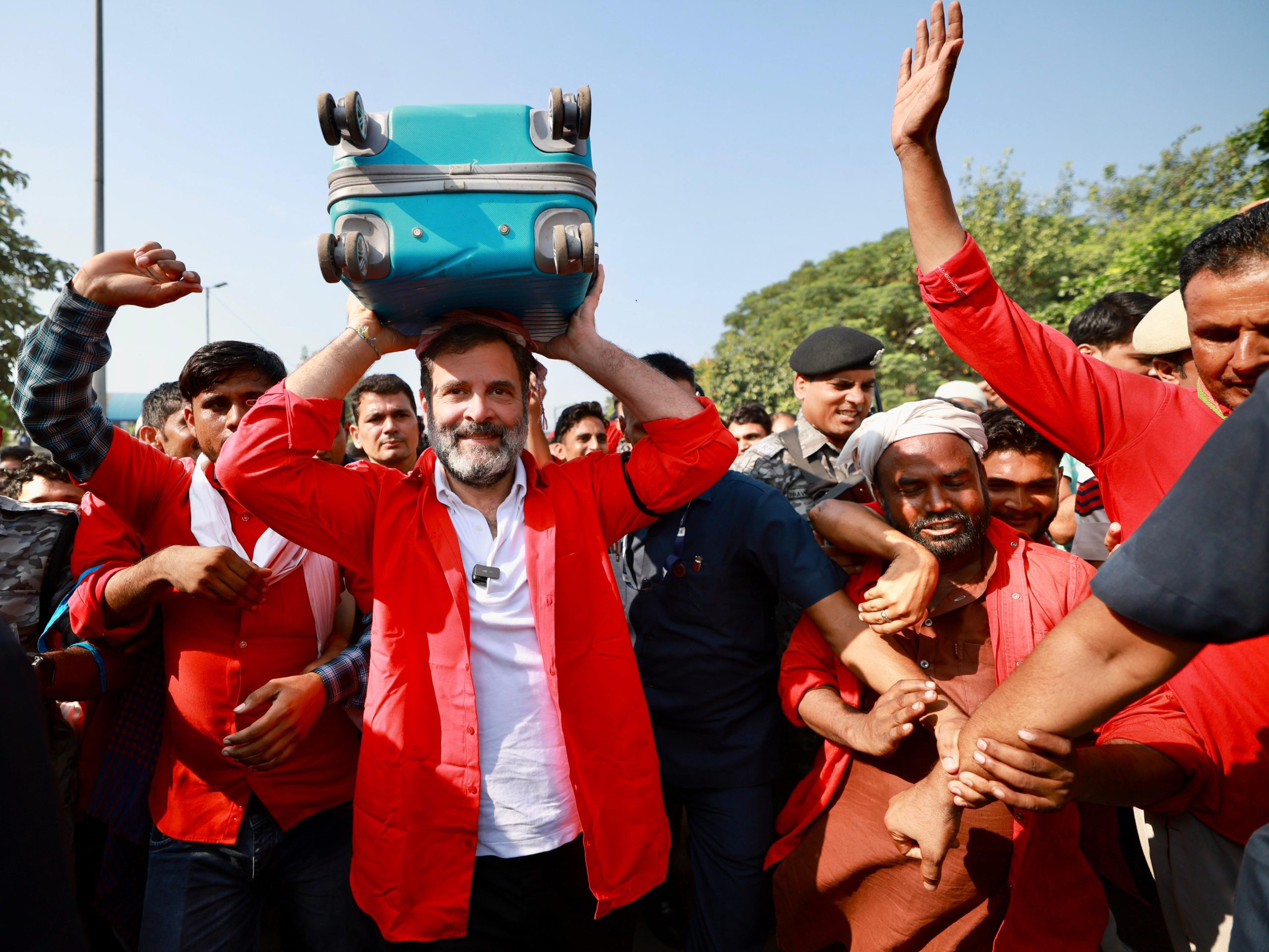 The video starts with a few porters requesting the Congress leader to come and meet them.