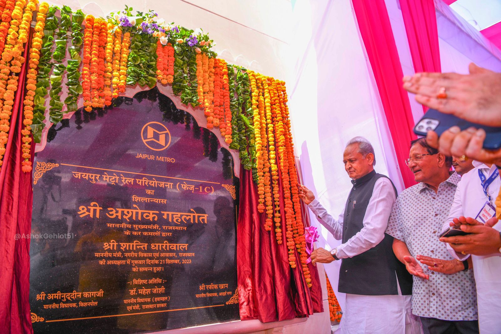 He inaugurated and laid the foundation stone of Phase 1-C of the metro project in Jaipur costing Rs 980 crore and 9 development works of the JDA costing about Rs 430 crore. Gehlot travelled by Metro from Ramnagar metro station to Badi Chaupar. He also visited the exhibition of the work done so far by Jaipur Metro at Badi Chaupar Metro Station. Gehlot also unveiled the statues of 7 freedom fighters at Lakshmi Mandir Tiraha.