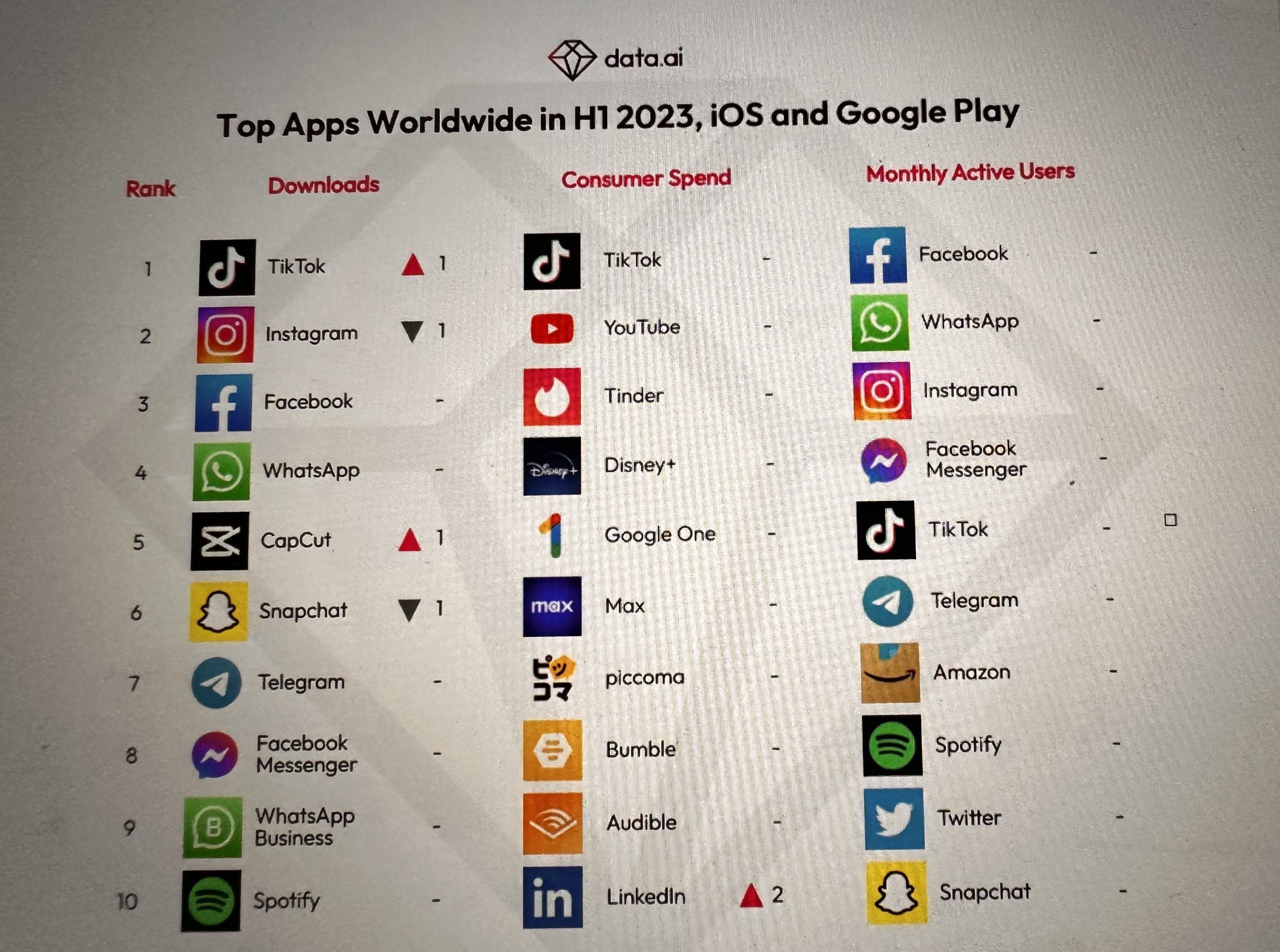 Piccoma, Disney+ and YouTube saw growth versus H2 2022 of 34 per cent, 10 per cent and 6 per cent, respectively.