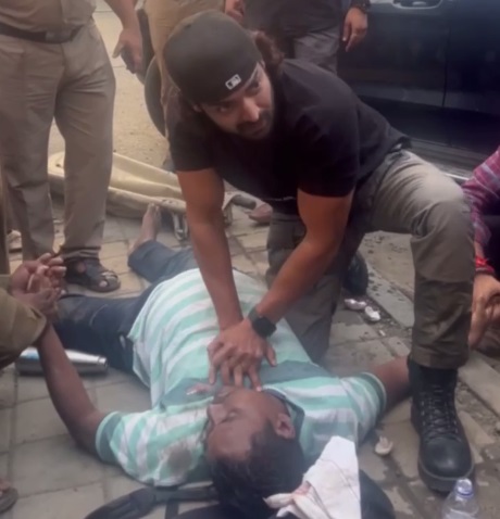 A video showcased Gurmeet first giving the man a CPR and then with the help of others putting him on a stretcher.