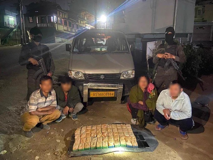 In Meghalaya, the East Khasi Hills district police on Saturday arrested four inter-state drug traffickers and seized heroin worth Rs 6 crore from their possession. The drug peddlers were travelling in a Maruti car.