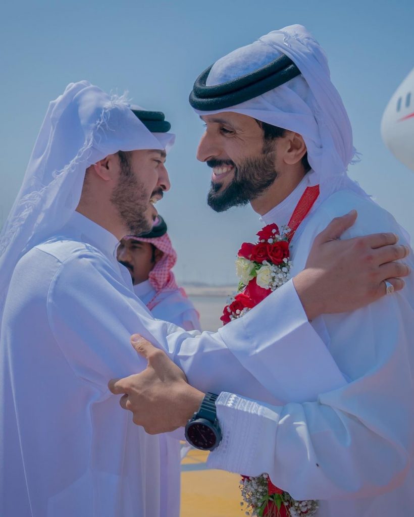 Manama: HM the King’s Personal Representative, President of the Supreme Council for Environment, His Highness Shaikh Abdulla bin Hamad Al Khalifa, welcomed HM the King’s Personal Representative for Humanitarian Work and Youth Affairs, Captain of the Royal Endurance Team, His Highness Shaikh Nasser bin Hamad Al Khalifa, upon arrival at the Al-Sakhir Airbase today.