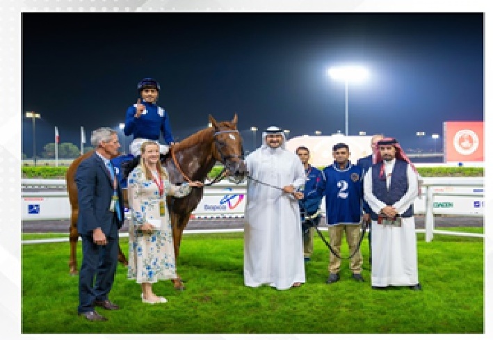 The nine-round race was held over the cups of the Arabian Horse Institution for Equestrian and Veterinary Services, with the attendance of a number of Their Highnesses, representatives of the Arabian Horse Institution as the official sponsor, and spectators.