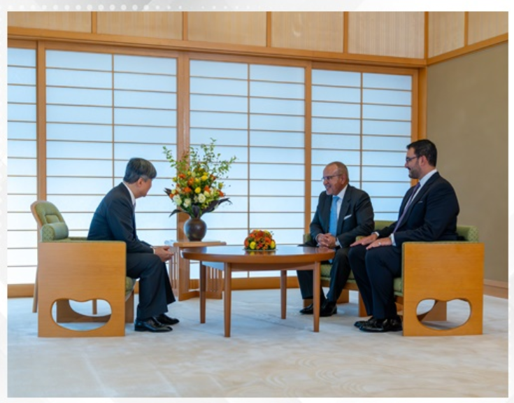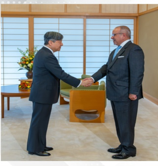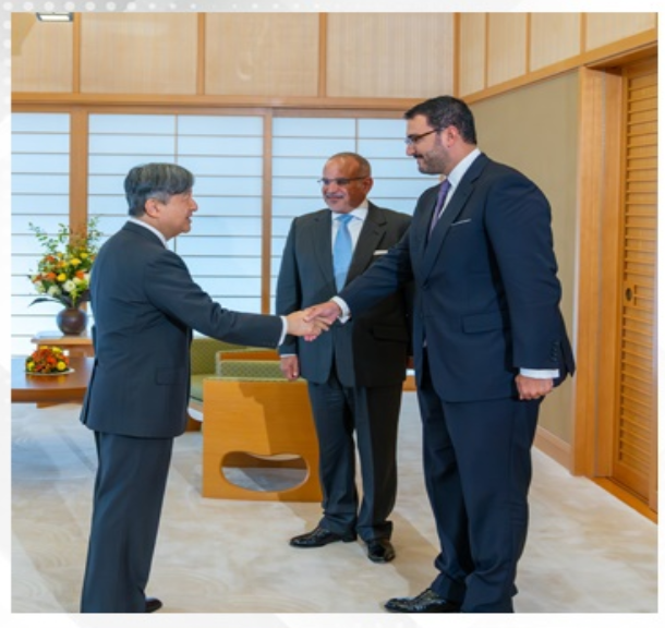 Tokyo : His Royal Highness Prince Salman bin Hamad Al Khalifa, the Crown Prince and Prime Minister, today met with His Majesty Emperor Naruhito, the Emperor of Japan, at the Imperial Palace.