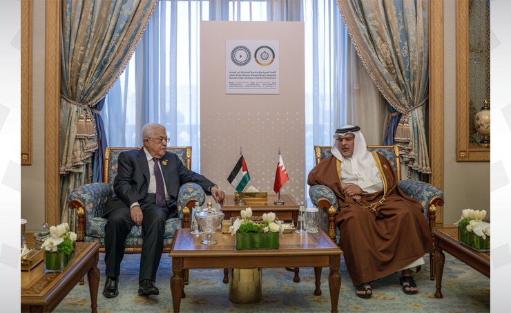 The meeting took place on the sidelines of HRH the Crown Prince and Prime Minister’s visit to Riyadh, the Kingdom of Saudi Arabia. His Royal Highness led the Kingdom of Bahrain’s delegation, on behalf of His Majesty King Hamad bin Isa Al Khalifa and in response to the invitation extended to His Majesty by the Custodian of the Two Holy Mosques, King Salman bin Abdulaziz Al Saud, to the exceptional Joint Arab Islamic Extraordinary Summit, held to address developments in the Gaza Strip.