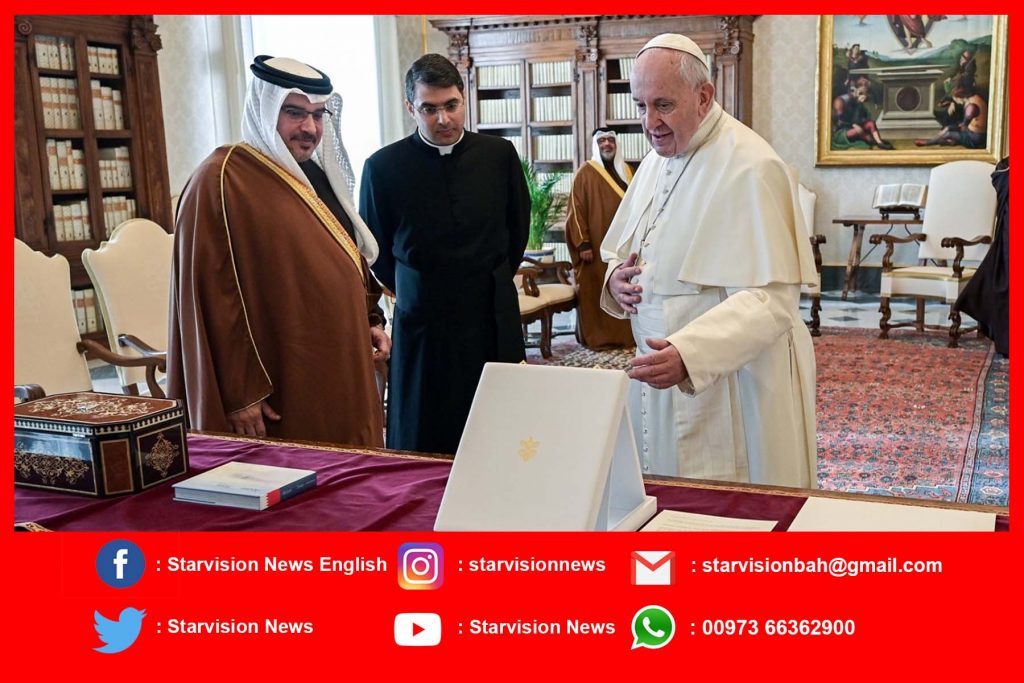 Vatican: His Royal Highness Prince Salman bin Hamad Al Khalifa, the Crown Prince, Deputy Supreme Commander and First Deputy Prime Minister, today met with His Holiness Pope Francis at the Apostolic Palace, in the Vatican City State. During the meeting, HRH the Crown Prince conveyed HM King Hamad’s greetings, wishing the Vatican City State continued progress and prosperity. HRH the Crown Prince noted that growing bilateral ties with the Vatican City State stand as a testament to HM King Hamad’s determination to promote peaceful coexistence, underlining the Kingdom’s commitment to interfaith dialogue.