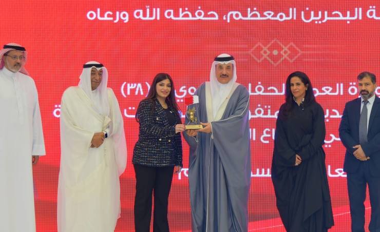 Then, Shaima Sayed Baqer Hassan delivered a statement on behalf of the honourees. She affirmed that HM King Hamad’s patronage of the annual ceremony confirms the royal constant support for the role played by the national workforce and institutions in building the nation.