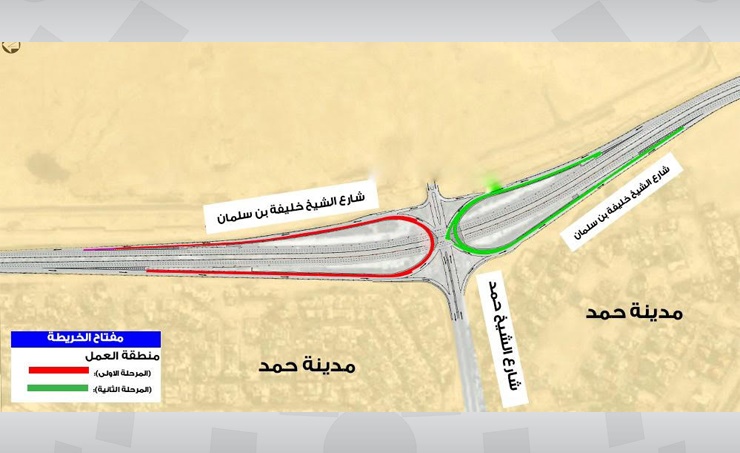 Manama, : The Roads Affairs at the Ministry of Works and the General Directorate of Traffic at the Ministry of Interior, have announced the phased closure of one lane on Roundabout 6 Flyover and Roundabout 14 Flyover, as part of the resurfacing works there, adding that an alternative lane will be provided for traffic movement.