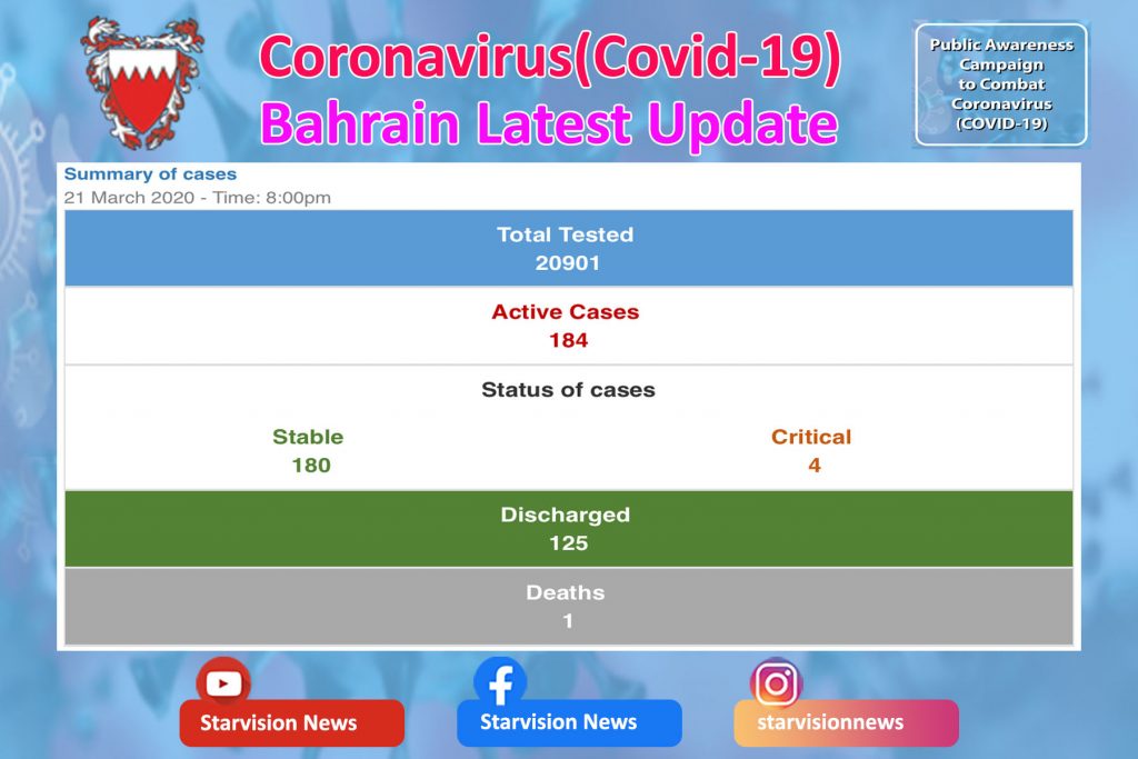 Share Facebook Twitter LinkedIn Pinterest Email Bahrain tested a total of 20614 until now. There are 184 active cases. These include 180 stable cases and 4 critical cases. 125 people have been discharged. Only 1 death has been reported until now.