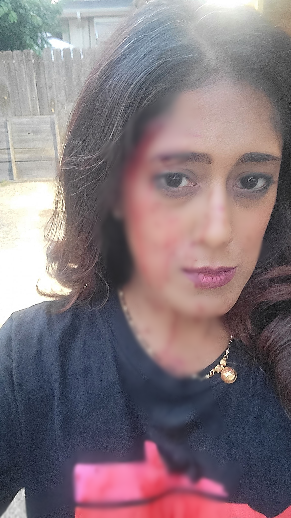 Sharing her bloodied picture on Facebook, Sathanandan called for tougher crime laws after being beaten with “guns, kicks and fists”.