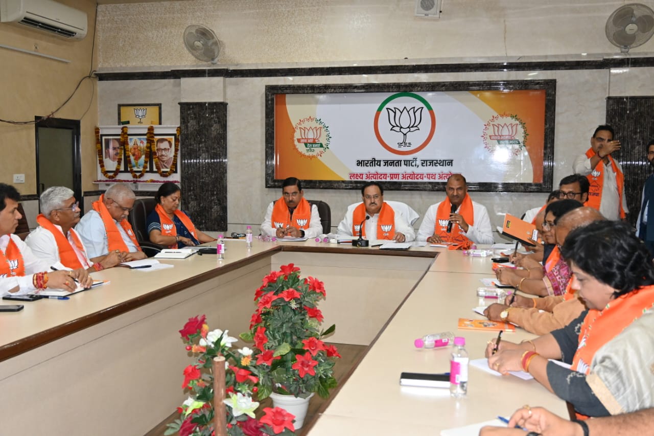 BJP’s core committee members, including party National General Secretary (Organisation) B.L. Santosh, party state election-in charge and Union Minister Prahlad Joshi, party National General Secretary and state-in charge Arun Singh, State BJP President C.P. Joshi, State BJP election co-incharge Nitin Patel, state co-incharge Vijaya Rahatkar, Union Ministers Gajendra Singh Shekhawat, Kailash Chowdhary, Vasundhara Raje Scindia, Rajya Sabha MP Rajendra Gehlot, MP Kankamal Katara, BJP National Spokesperson and MP Rajyavardhan Singh Rathore, Leader of Opposition Rajendra Rathod and Deputy Leader of Opposition Satish Poonia were present.