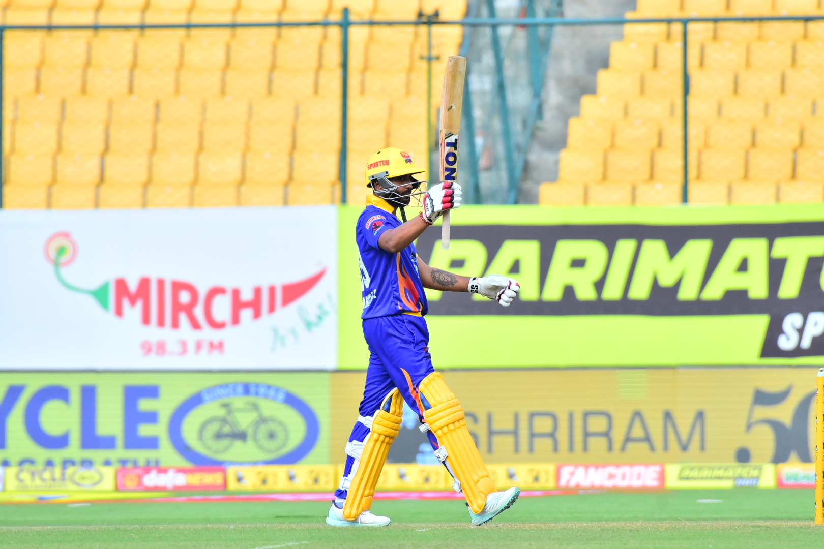 Sharath lit up the M. Chinnaswamy Stadium on Tuesday, hitting 9 fours and 5 sixes on his way to an unbeaten 111 off 61 balls. He was well-supported by opener Rohan Patil, who scored a breezy 54 runs to ensure they chased down the target of 202 runs with five wickets to spare.