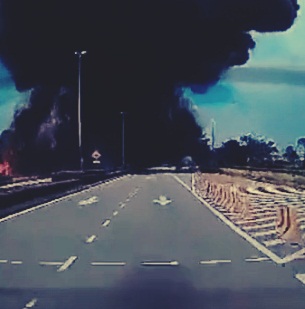 Videos and images from the site of the crash showed a burnt section of the highway cordoned off with smoke in the air.