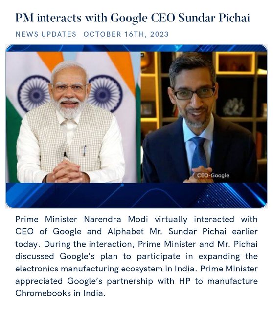 Modi appreciated Google’s partnership with HP to manufacture Chromebooks in India. He acknowledged Google’s 100 languages initiative and encouraged efforts to make AI tools available in Indian languages.