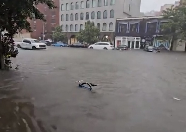 Video footage showed cars stuck in the flooded streets at the Red Hook neighbourhood in the Brooklyn borough. Some people were working to clear a drain in flood water.