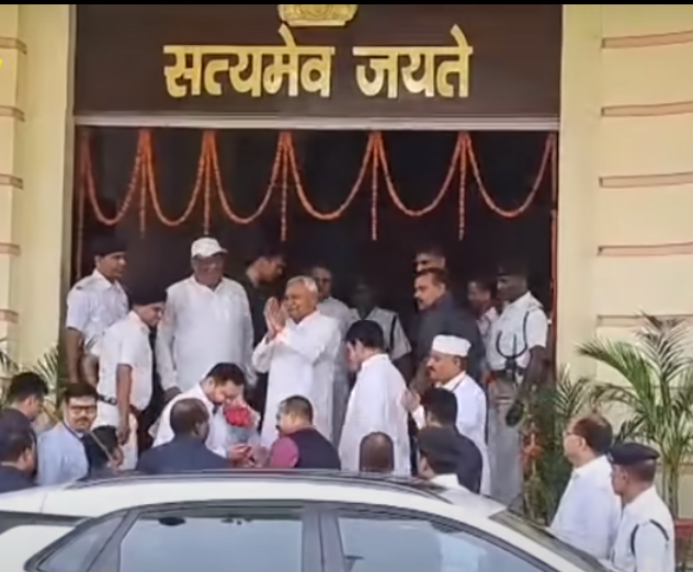 The Bihar Chief Minister and Deputy Chief Minister both arrived in one vehicle at the Vidhan Sabha and where received by assembly functionaries and supporters.