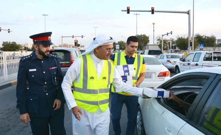 Manama : Northern Governor, Ali bin Al Shaikh Abdulmohsen Al Asfoor, participated in the distribution of 500 healthy Iftar meals at the junction of Salman City. The distribution was part of the Northern Governorates’ Fast-Breaking on the Road activity.