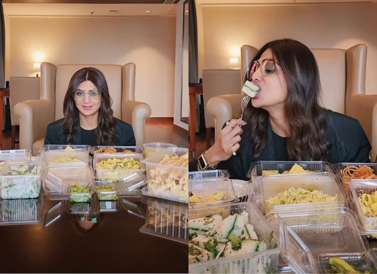 In an Instagram Reel video, Shilpa can be seen binging on Gujarati delicacies and snacks.