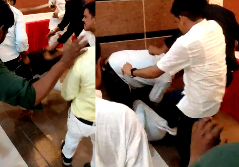 The shoe slipped the target and the youth, Akash Saini was immediately overpowered by the people and thrashed before he was handed over to the police.