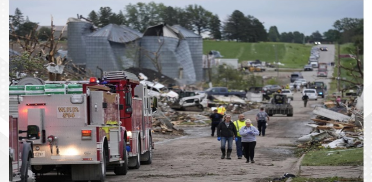 Iowa : Multiple people were killed when a tornado tore through a small town in Iowa and left a wide swath of obliterated homes and crumpled cars, while the howling winds also twisted and toppled wind turbines.