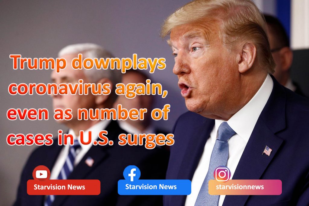 US President Trump continued to downplay the exponential spread of the coronavirus in the United States on Monday, comparing the rising death toll to the number of Americans killed in car crashes and by the seasonal flu.
