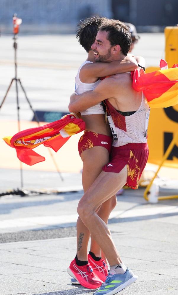 Martin waited near the finish line to hug his teammate Maria Perez, who dominated the women’s 35km race by setting a new Championships record in 2:38:40.